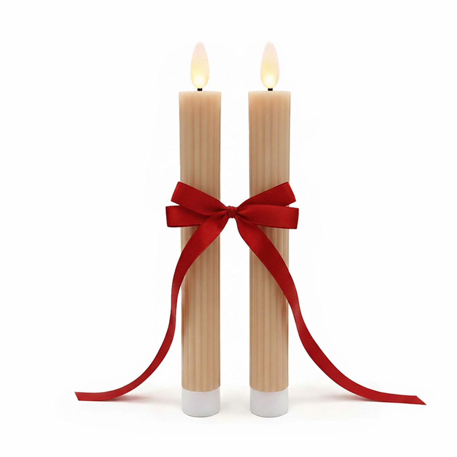 Ymenow Äkta vax, LED-ljus med timerfunktion, 2 stycken flamlösa LED-stavljus, vita ränder med fjärrkontroll, flimrande låga för vardagsrum, rum, halloween, julfest, dekoration – varmvit