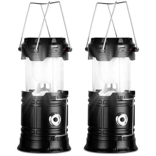 PQETBV Sol Camping Ficklampa, Vikbar LED Camping Ljus, Vattentät, Svart