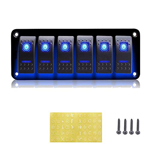 CT-CARID 12 V 6 gäng brytarpanel med LED-ljus vattentät vippbrytare för bil båt marin husbil fordon BLÅ