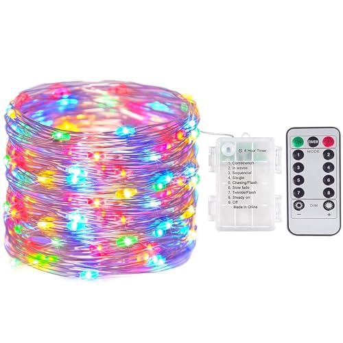 ANGMLN LED-ljusbunt, med fjärrkontroll, 200 mikroLED, 2 m, silvertråd, mirco-ljusslinga, batteridrift, 8 ljuslägen, timerläge, ljustråd, kopparbelysning, dekoration, för inomhus- och utomhusbruk,