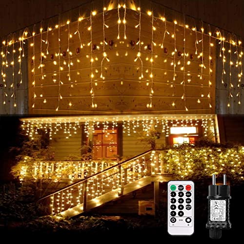 Nurkoo LED isregn ljusslinga el, 10 m 400 lysdioder för inomhus- och utomhusbruk, GS-testad, IP44, 8 lägen ljusgardin med minnesfunktion fjärrkontroll timer för rum, takterrass, jul, trappor, räcke