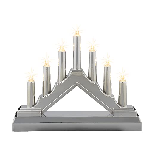 hellum, LED-ljusstake, ljusbåge, plast, silver, 7 varmvita lysdioder, 16 x 13 cm, inomhus, batteridriven (2 AA), juldekoration, 520934