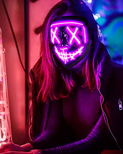Yumcute LED-lila Halloween-mask Den purge mask, coola Halloween-masker för vuxna, halloween handgjord med 3 blixtlägen