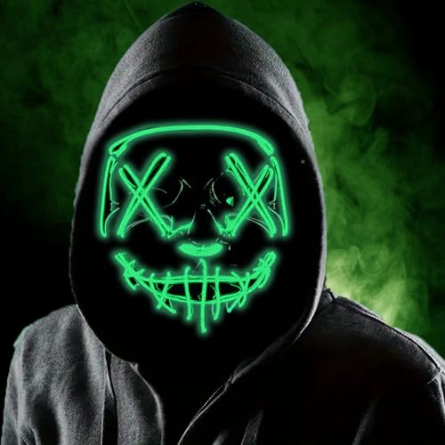 Boolavard Halloween-mask LED-upplyst mask för festival cosplay halloween kostym maskerad fester, karneval, gåvor (grön)