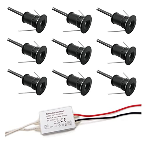 HHTUN 902 Led Mini Downlight DC12V 1W Används för skåp, skåp, vitriner, inbäddade installationer, med nätdel och anslutningsklemmar (4000K,Svart,9Pack)