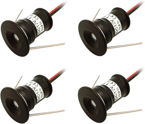 4 delar mini LED-downlight, endast supersmal 17 mm, DC 12 V och 24 V, 3 W 250 lumen, hål 50 mm för kök badrum husbil infällda skåplampor (svart, varm vit 3 000 K)