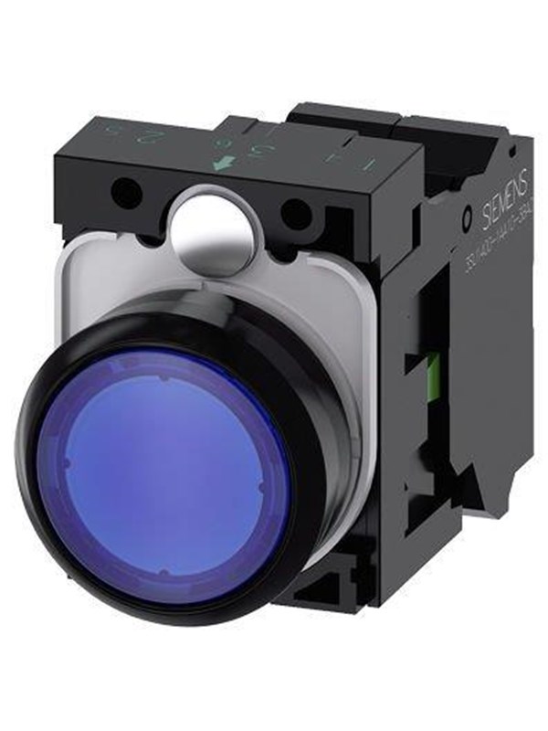 Siemens Illuminated pushbutton 22 mm round plastic blue pushbutton flat momentary contact type with holder 1 no led module with integrated led 24 v ac/dc spring-type terminal