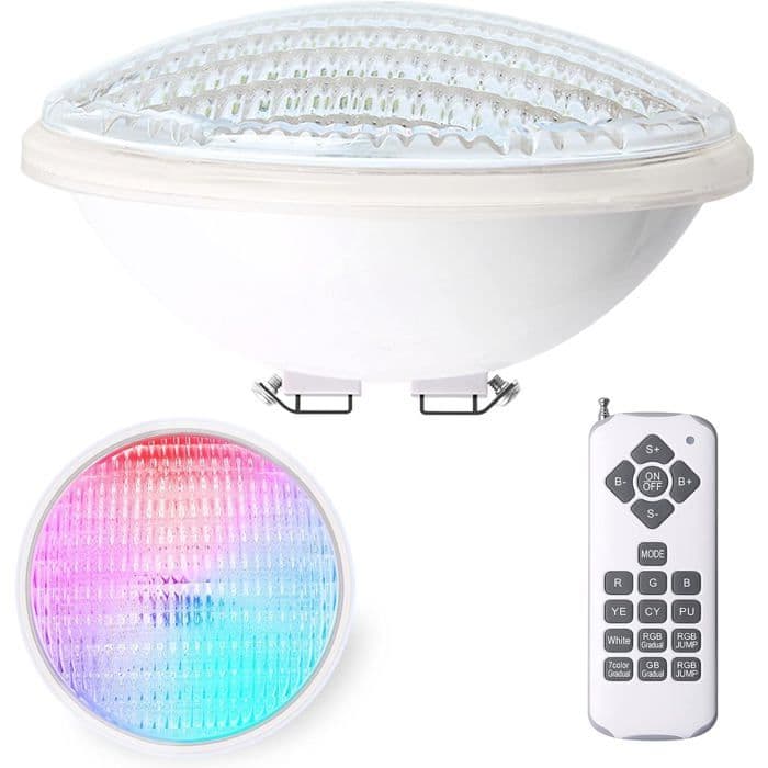 LyLmLe LED Pool PAR56, 20W dyklampa PAR56 flerfärgad RGB dimbar med fjärrkontroll, LED-undervattensbelysning vattentät färgförändring IP68, 120° vinkel, 12 V AC