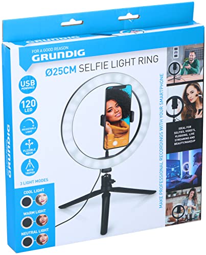 Grundig Selfie ringlampa på statdjup – för smartphone – sociala medier och vloggar – 152 LED – flexibel – ⌀ 25 cm