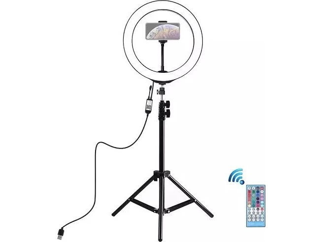 Puluz Led-Ringlampa 12 Cm, Med Tripod Bordsstativ Upp Till 24,5 Cm, Usb, Rgbw (Pkt3049b)