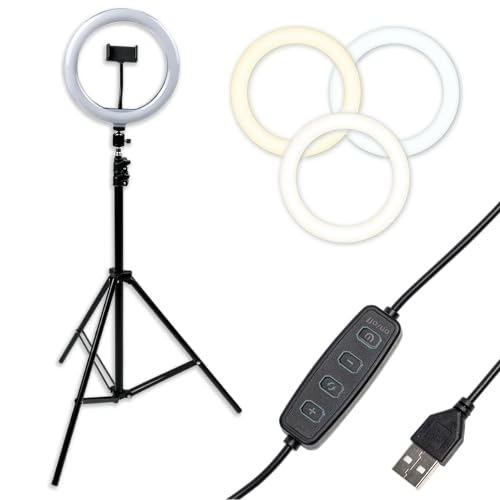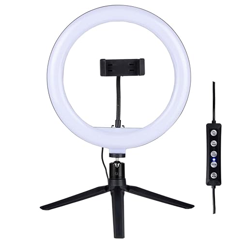 LED-ringljus med stativ, 25,4 cm (10 tum), ringlampa med stativ, ringljus för mobiltelefon, fjärrkontroll, USB-driven, 3 ljuslägen, 11 ljusstyrkenivåer för smink, live-streaming, selfie, videochatt, vlog