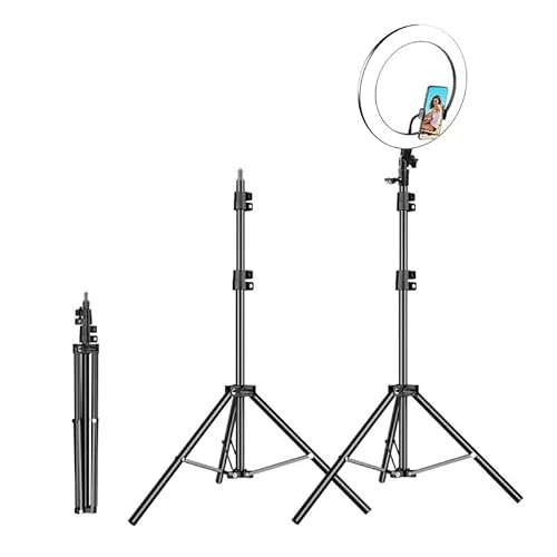 25,4 cm ringlampa med stativ och telefonhållare, selfie-ringlampa med fjärrkontroll för telefon, 178 cm högt cirkelljus, LED-ringlampa för smink, videoinspelning, konferens, Twitch