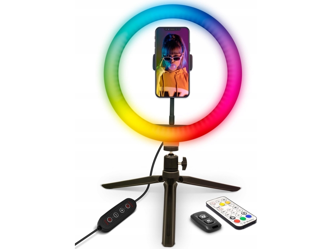 Grundig Selfie ringlight – på stativ – ringlampa – ringljus för mobiltelefon – LED – flexibel – 210 cm