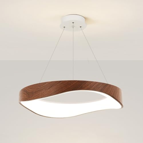 Modern LED-ljuskrona, hängande ringlampa, hängande lampa i valnöt med vattenöverföringsfinish, Modern LED-ljuskrona, runda metallhängande lampor med akrylskärm, Nordic Simple Drop Li