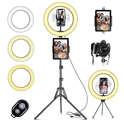 Jubor 25 cm ringljus overhead stativ mobiltelefon, LED ringljus med stativ mobiltelefon dimbar ringlampa videokonferenser lampor 3 ljusfärger + 10 ljusstyrkor för YouTube, selfies, smink, TikTok