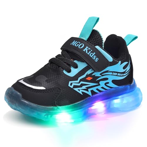 LED-skor for barn - lysande sneakers for pojkar med kardborreband, andningsbara barnskor med ljus for utomhusbruk, orange/blå/lila, trainers sportskor for pojkar blinkande(Blå,24 EU)