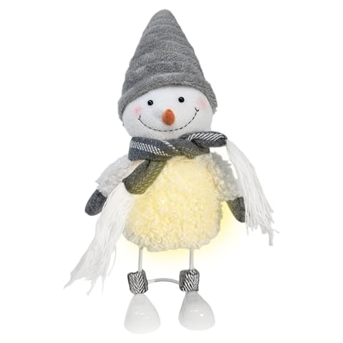 EMOS LED, snögubbe med 6 lysdioder, juldekoration, sittande snögubbe med vest och toppmössa, upplyst vinterfigur med hängande ben, 21 x 31 cm, varmvit ljusfärg, batteridriven 3 x AA
