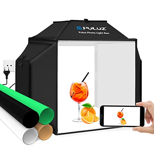 PULUZ 40 cm/16 bärbar fotostudio skjuttält vikbart softbox belysningssats, justerbar 24 W 5 500 K 480 LED-lampor softbox för produktfotografering med 4 färger PVC-bakgrund