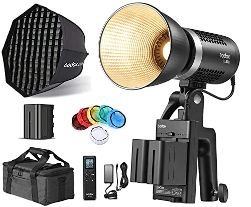 Godox ML60Bi LED-videolampa 60 W ström i dina händer, med Softbox AD-S60S, RC-A6 fjärrkontroll, 2 x litiumbatteri, NP970
