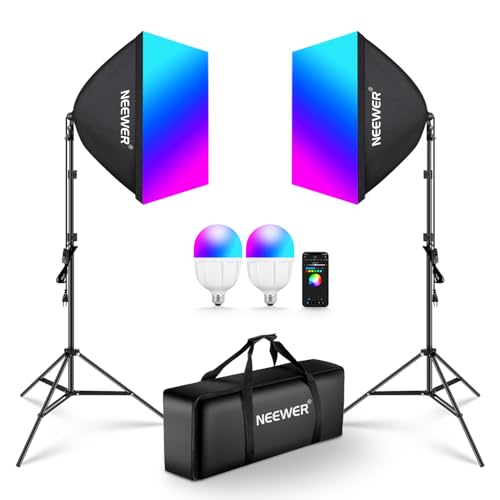 NEEWER NK800 RGB-softbox, belysningsset med appkontroll och 9 effektlägen, 2-pack, 24 W, CE/UKCA-certifierade LED-lampor, CRI93+, TLCI98+, E27 porslinssocklar, 60 cm softboxar, för