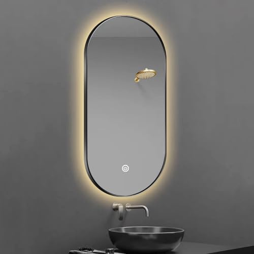 Oval LED-badrumsspegel, 40 x 60 cm, 40 x 70 cm, 40 x 80 cm, 50 x 80 cm, 50 x 100 cm, upplyst spegel med aluminiumram, väggspegel, kosmetisk spegel med dimbar i 3 färger (färg: svart