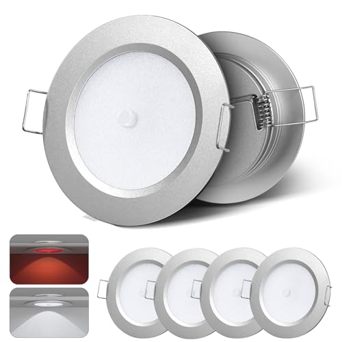 CamperXlite 4 x LED recessed spotlight 12V DC husbil, 76mm aluminium dimmable LED spot 24V med rött ljus, inbyggd dimmer för husvagn, båt, campare, kök, badrum, RV-CRI93-5000K