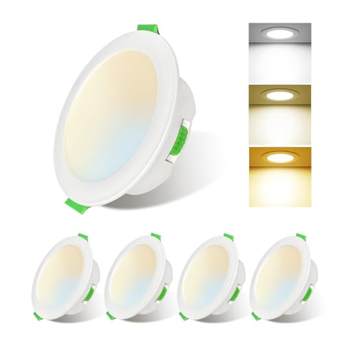 ALUSSO LIGHTING LED infälld spotlight 230 V dimbar platt, spotlights 6 W 68 mm med avtagbar modul, 3 CCT varmvit naturvit kall vit IP44 infällda lampor, takspotlights för badrum kök, set om 6