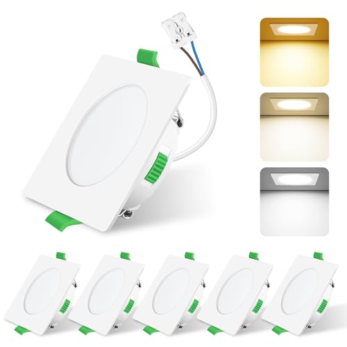 ALUSSO LIGHTING Dimbar infälld LED-spotlight, 4 W 310 lumen badrumspot IP44,3CCT 3 000K 4 000K 6 500K justerbar färgtemperatur, plats för badrum, vardagsrum, kök, set med 6, vit, fyrkantig
