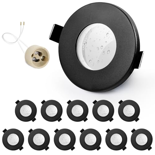 GeyouLux 12x infälld LED-spotlight IP65 ram med GU10-uttag, svarta järntakspotlights, platta runda spotlights badrum spotlight 68 mm installationsram för utomhus- inomhus