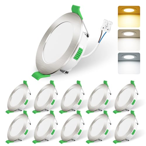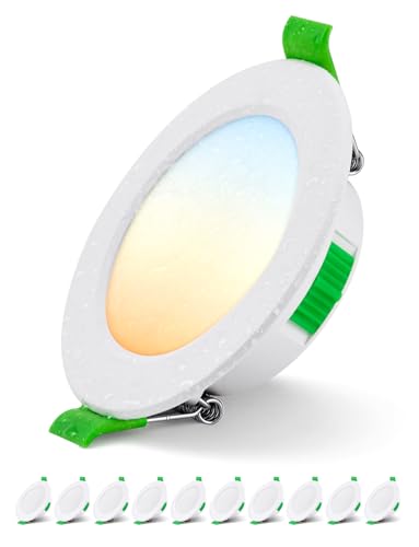 HOMEOW 7 W, infälld LED-spotlight, vattentät LED-spotlight för badrum 600LM IP44, varmvit 2 700K, neutral vit 4 000 K och kall vit 6 000 K, hål Φ 75–90 mm, 24 mm extra platt, ej dimbar, set med 10 st