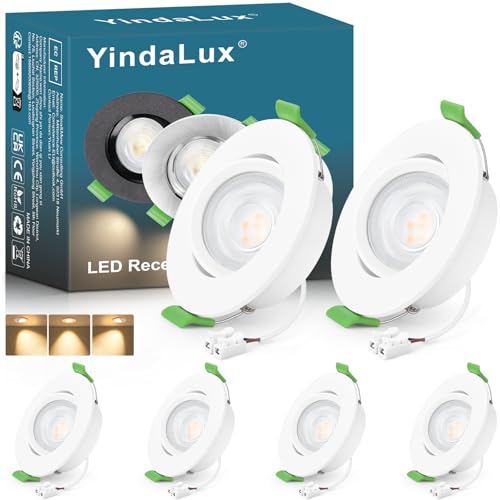 YindaLux LED infälld spotlight 230V dimbar 5W 550LM takspotlights vit platt LED-strålkastare 230V 65-75 mm IP44 badrum infällda spotlights 2700K 4000K 6500K set med 6