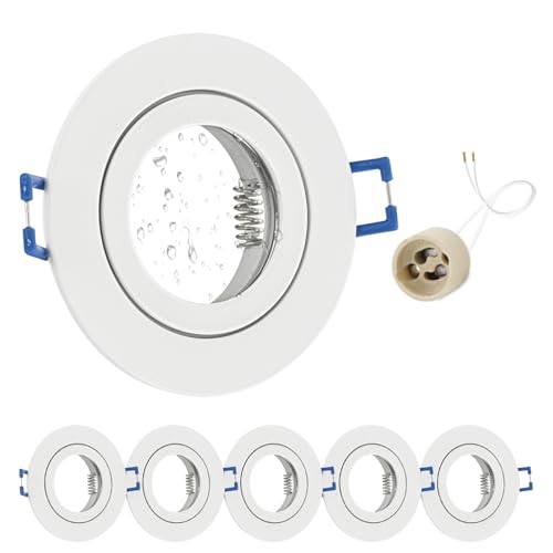 SEBSON Infälld Spotlight runt IP44 för Badrum Set av 6 - Vit aluminium - Tak Monteringsram håldiameter 70mm - Takspotlight inkl. GU10 uttag för LED/halogen