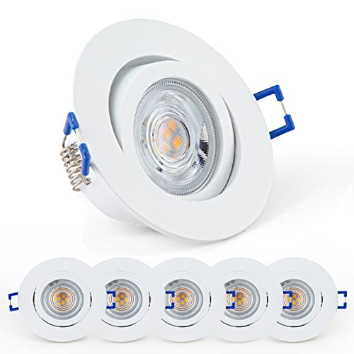 ALUSSO LIGHTING Infälld spotlight LED, 5 W, 460 lumen, LED, infälld spotlight, 230 V, 3 000 K, 4 000 K, 6500 K, dimbara takspotlights, IP44 takstrålkastare för kök, vardagsrum, badrum, set om 10,