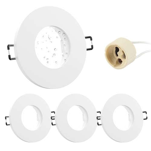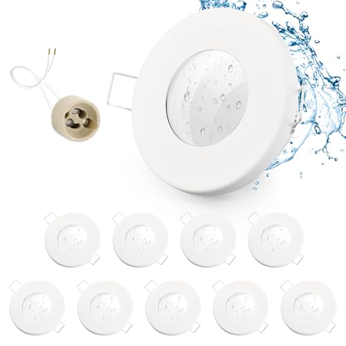 SEBSON Infälld Spotlight runt IP44 för Badrum Set av 12 - Vit aluminium - Tak Monteringsram håldiameter 70mm - Takspotlight inkl. GU10 uttag för LED/halogen