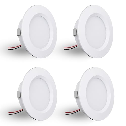DYKUWEY Infälld LED-spotlight, dimbar 12 V LED-spotlight, 3 W extra platt infälld spotlight 14 mm, IP44 spotlight badrum hål 55 mm, takspotlights för husbil kök, set om 4 (vit, varm vit 3 000 k)