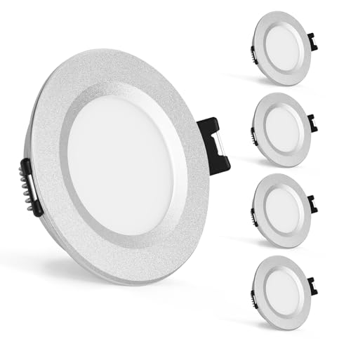 ALUSSO LED infälld spotlight, extra platt, 5 W, 400 lumen, dimbar varmvit, 3 000 K, neutral vit, 4 000 K, kall vit, 6 500 K, 230 V, infälld takbelysning för badrum, kök, vardagsrum, set med 6 st