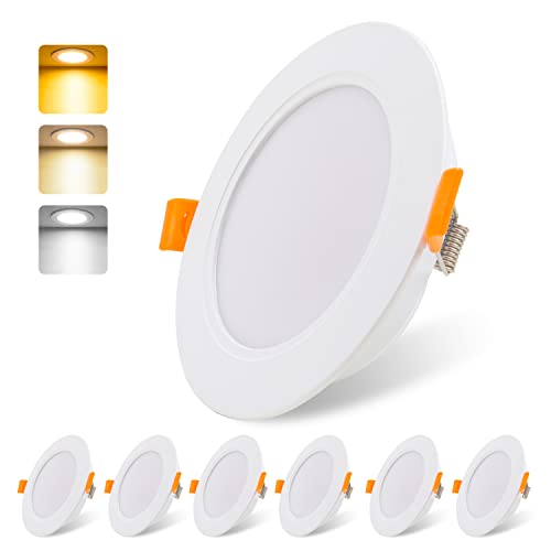 LVWIT Extra platt infälld LED-spotlight, 6 W motsvarande 51W, LED-takspotlight 600 LM, 3 000 K varmvit 4 000K neutral vit 6 500K kall vit, LED-spotlight för badrum kök vardagsrum hall, set om 6