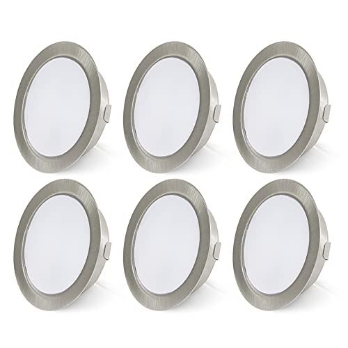 HCFEI 6 x LED infälld spotlight set superplatt 3 W 230 V, borstat rostfritt stål, dimbar, 55 mm infällda hål, varmvit 3000 K