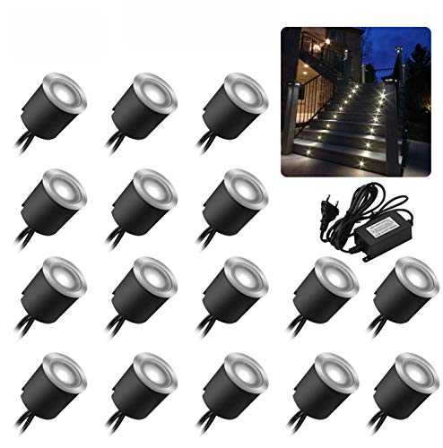 Arotelicht LED infälld spotlight LED infälld lampa golvmonterad lampa, IP67 vattentät 0,6 W Ø 32 mm invändigt utanför terrass kök trädgård dekorativt ljus 4000 K, vit, 12V (varm vitt, Set med 16 stycken)