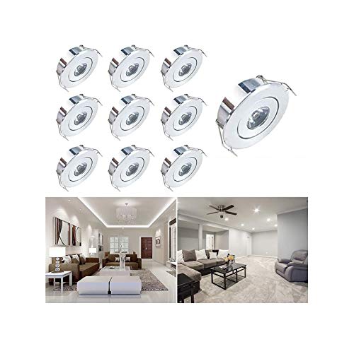 INHDBOX Mini LED infälld spotlight set, 10 x 1 W, kall vit infälld spotlight för tak, vridbar, COB takspotlights aluminium för vinskåp, skåp, kök, vardagsrum