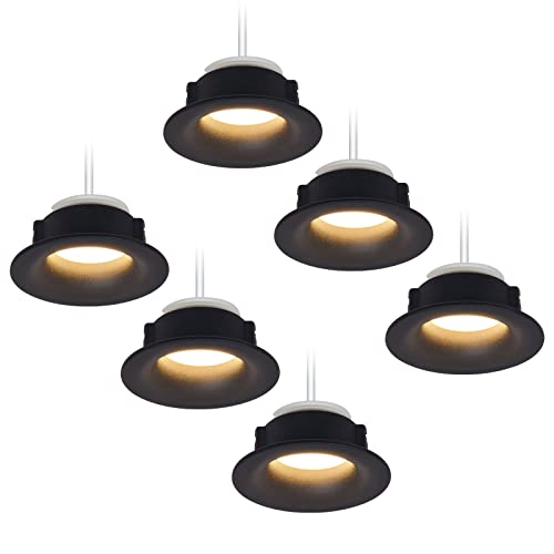 HCFEI LED infälld spotlight set rund – svart 5 watt neutral vit 4 000 K dimbar 230 V platt (40 mm djup) – infälld lampa Ø 68–76 mm borrhål – infälld spotlight för tak (6 st)