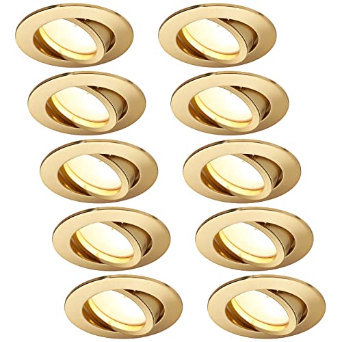 HCFEI LED Infälld Spotlight Dimbar Matt Guld Rund Vridbar 5 W Platt 230 V Spot, 68 mm Borrhål, 120° Strålvinkel, Varmvit 3000 K (10-Pack)