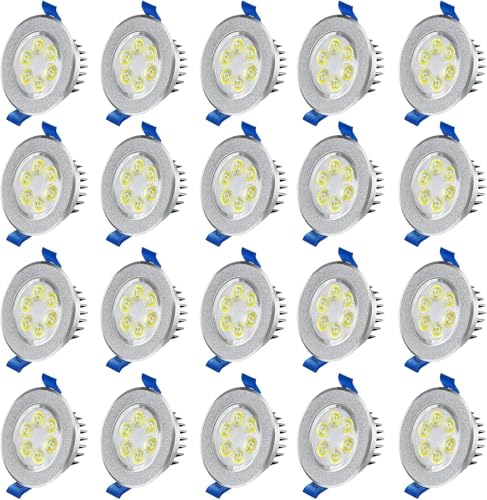 NAIZY LED infälld spotlight 230 V ultra platt infälld lampa set om 20 5 W badrum infälld spot aluminium mini takspot för vardagsrum, sovrum och kök – 20 x 5 W, kall vit