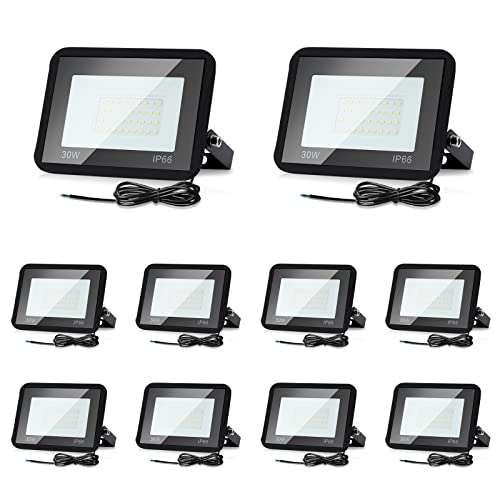 Lospitch 30W LED Spotlight Utomhusljuskrona, 10X LED Strålkastare Vattentät IP66, 2550LM 3000K Varmvit Utomhus Säkerhetsljus Spotlight, för Yard Lager Tak Lekplats Trädgård Garage Dekoration