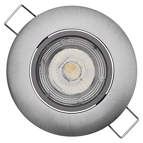 SEBSON Infälld Spotlight runt IP44 för Badrum Set av 6 - Borstad aluminium - Tak Monteringsram håldiameter 70mm - Takspotlight inkl. GU10 uttag för LED/halogen