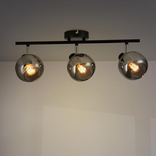 M Ledme - Glasserie taklampa med 3 spotlights, inomhus LED-spotlight för tak E14 glödlampor, LED-taklampa inomhus med svart finish (glödlampa ingår inte)