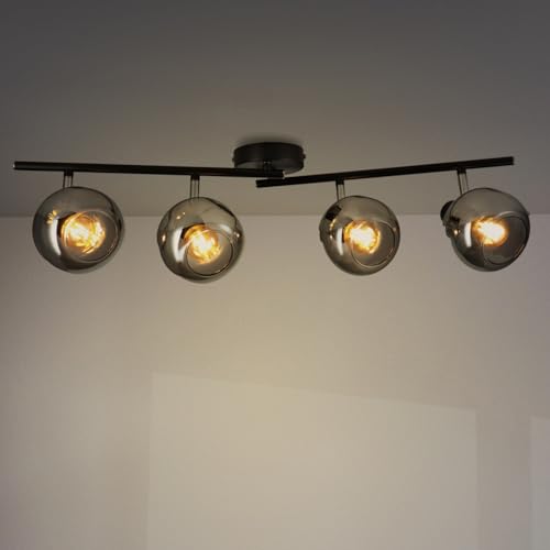 M Ledme - Glasserie taklampa med 4 spotlights, inomhus LED-spotlight för tak E14 glödlampor, LED-taklampa med svart finish (glödlampa ingår inte)