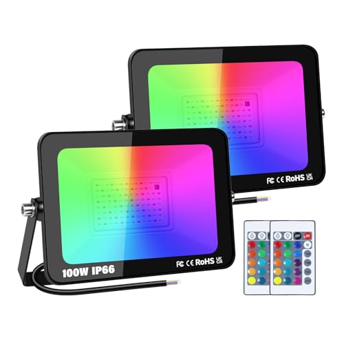 Lospitch 2-pack RGB LED-spotlight utomhus, 50W Smart LED-strålkastare, IP66 vattentät spotlight för utomhusbruk med 16 färger 4 lägen, dimbar, minnesfunktion, humörljus med färgförändring