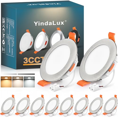 YindaLux LED infälld spotlight 230V Ultra Flat 5W IP44 LED-strålkastare dimbar 68 mm hålstorlek takspotlights 550 lm infällda spotlights varmvit neutral vit kall vit infällda spotlights för badrum