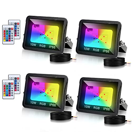Tubiaz 4 st 10 W RGB LED-strålkastare, färgad strålkastare med fjärrkontroll, IP66 vattentät RGB strålkastare färgväxling dimbar 16 färger 4 lägen, strålkastare med minnesfunktion för träd, fest